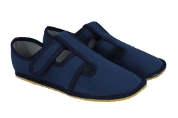 Barefoot kapcie elastyczne ze skórzaną wkładką lekkie zmienne Raweks Zuzia 03 granatowe kapcie na rzepy do przedszkola