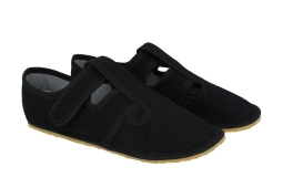 Kapcie barefoot elastyczne czarne obuwie zmienne ze skórzaną wkładką lekkie Raweks Zuzia 04 kapcie na rzepy do przedszkola